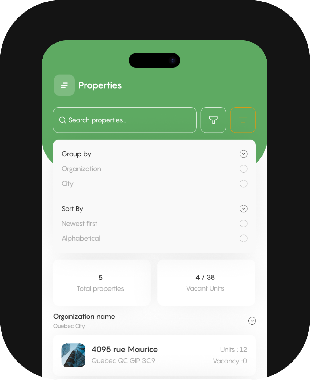 Everything is organized for you : tenants, documents, communications, and tracking.